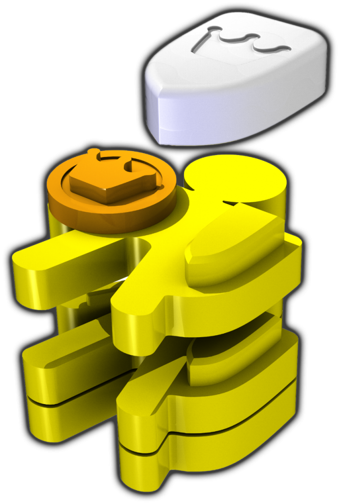 Ritari koostuu kolmesta 3D-tulostetusta ritarimerkistä. Merkkien määrä pinossa kertoo ritarin jäljellä olevan kestävyyden, ja pinon päällä oleva kilpi kertoo ettei ritaria ole tällä kierroksella vielä aktivoitu. Myös Alzamortista ryövätty kulta kiinnittyy ritarin käteen. Näin saa kätevästi kuljetettua pelimerkkejä laudalla yhdessä pinossa.