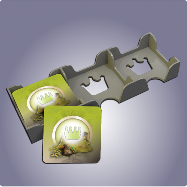 Korttitelineessä on paikat kolmelle pakalle, joten peruspelille riittää yksi teline, mikäli kahdeksan kortin sivutehtäväpakka selviää pelin ajan telineettä.